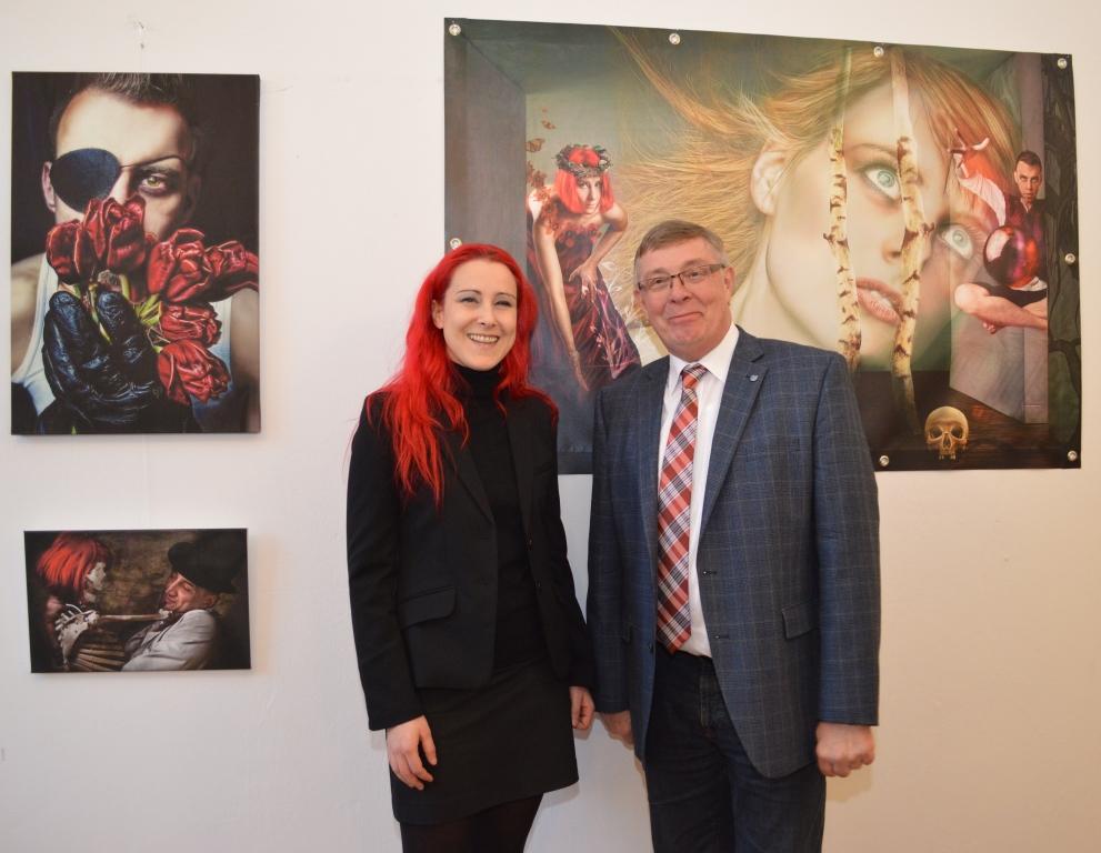 Sehr viele Gäste waren der Einladung gefolgt. Kein Wunder, denn es war mal etwas ganz Anderes als bisher. Die Künstlerin bearbeitet normale Fotos und macht daraus etwas ganz Außergewöhnliches. Jedes Bild geht auf eine Reise in eine andere Welt. Die Bilder sollen provozieren, so die Aussage der Künstlerin. Sie ist froh, wenn sich Leute kritisch über einige Bilder äußern und so ins Gespräch kommen.