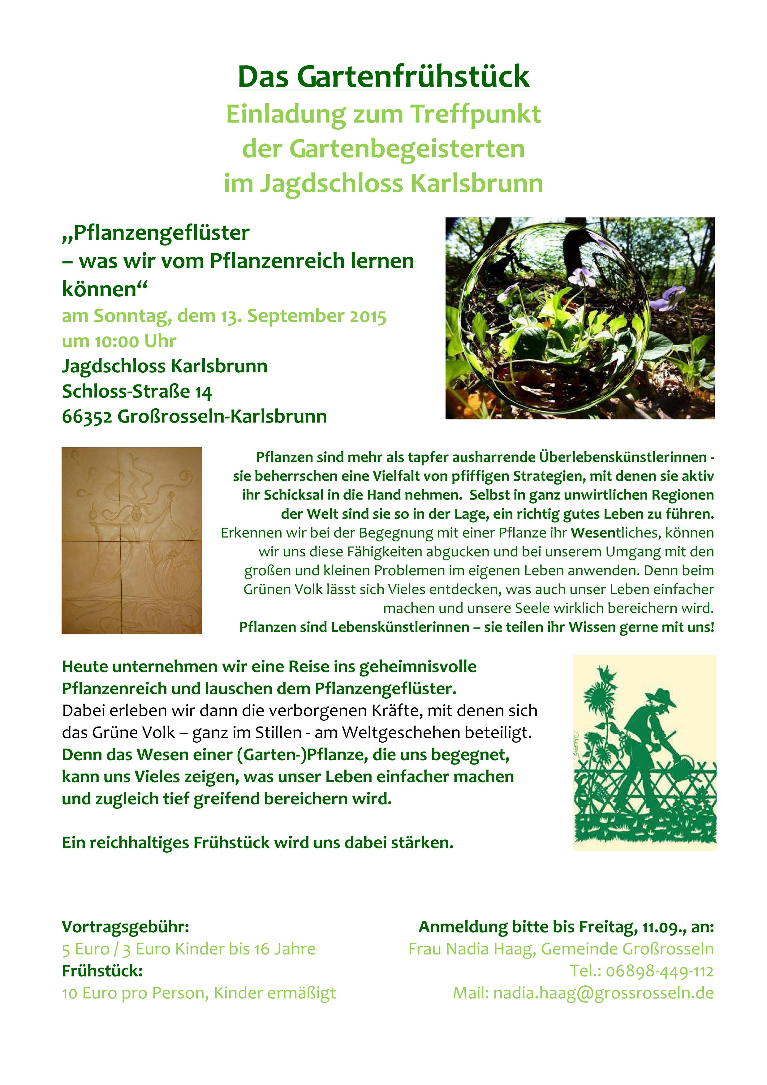 Outdoor-Hochzeit im Forstgarten Die Gemeinde Großrosseln hat ein neues Angebot für Verliebte, die sich in einem romantischen Ambiente trauen lassen wollen. Eine Outdoor Hochzeit im Forstgarten Karlsbrunn, direkt am historischen Jagdschloss. Selbstverständlich steht dem Brautpaar bei schlechtem Wetter unser romantisch eingerichtetes Trauzimmer im barocken Jagdschloss zur Verfügung.