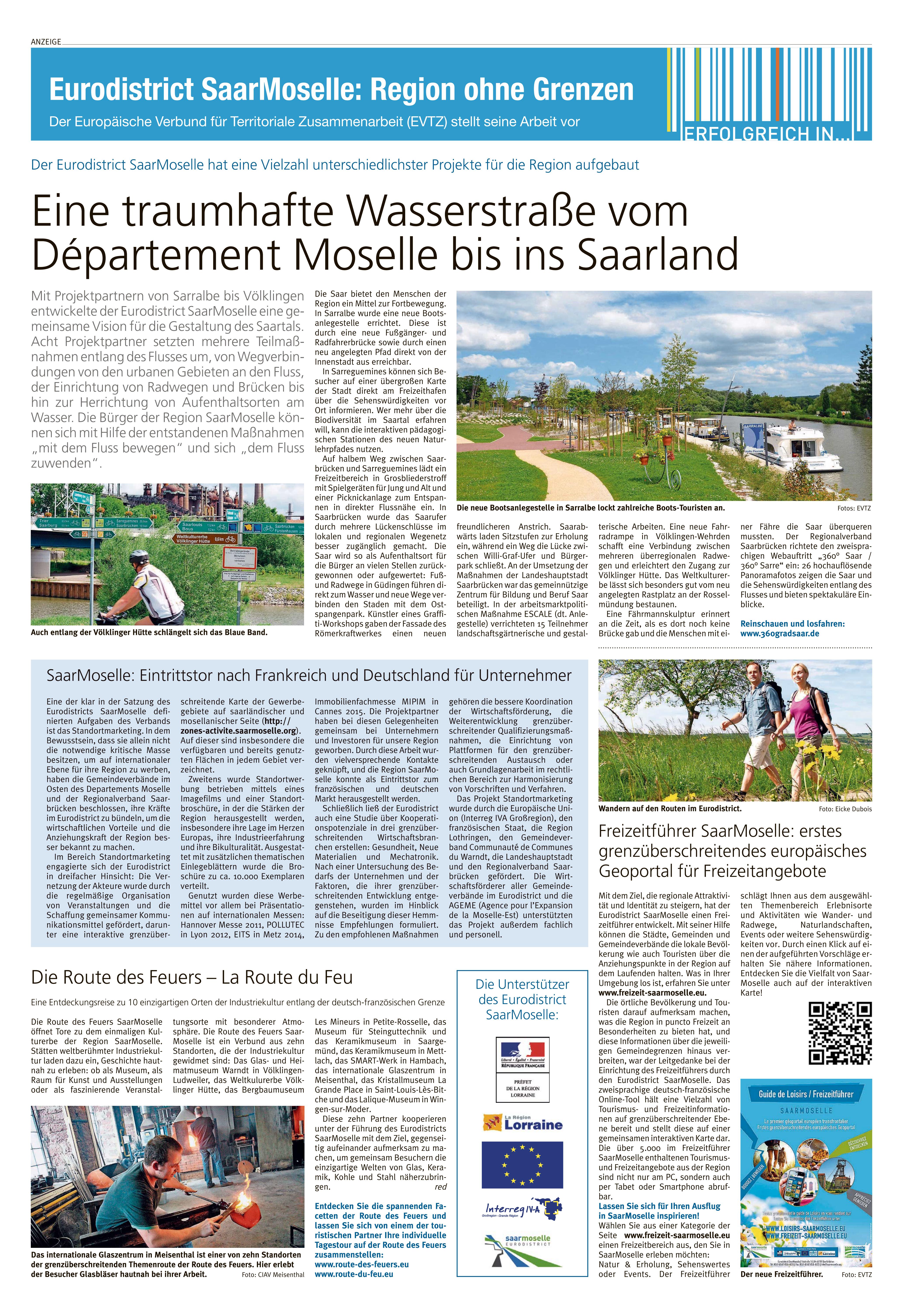 Weiterlesen: Eurodistrikt SaarMoselle: Anzeige in der Saarbrücker Zeitung