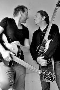 Welch ein lustiger Name für dieses Gitarrenduo ! Diese zwei langjährigen Gefährten haben schon in so verschiedenen Gruppen und Stilen mitgewirkt und dabei bewiesen, dass sie die Säle und Festivals rocken können. Aus dieser Erfahrung ist die Idee entstanden, ein Repertoire an neu arrangierten Popliedern zusammenzustellen, in einer Weise, dass das Wesentliche der Songs erhalten bleibt. Es ist, als würde man den beiden Freunden beim Zubereiten eines leckeren Steaks zuschauen, und um das Ganze noch zu steigern, wird mit noch einer kleinen Prise Schlagzeugklänge aus einer kleinen roten Pedalbox gewürzt. Die Songs und die Songwriter, die sie spielen sind unterschiedlich, aber nie beliebig. Zu hören sind Klassiker, die von allen Musikern gespielt werden oder von fast allen, so z.B. von Police bis Stevie Wonder, über Lou Reed, U2, Joe Cocker, bis Gainsborgh, Bob Marley, Baschung, Rita Mitsouko, und den Beatles